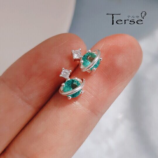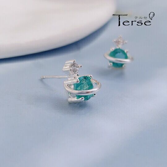 この「Terse きらきら惑星ピアス」は、清楚で美しいグリーンのジルコニアが特徴のデザインです。星座をイメージしたユニークな形状が、光を反射してきらきらと輝き、あなたの存在を一層引き立てます。特別な日やお出かけ、パーティーシーンでも大活躍するアイテムです。