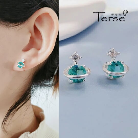 Terse きらきら惑星ピアス 1ペア 二色のジルコニアが清楚で女性らしい輝きを放つ グリーン 緑 レディース プレゼント ギフト お出かけ パーティー 二次会 プラネット 土星 サターン 宇宙 星空 衛星 星座 プラネタリウム 夜空 天体 白 緑 SE0063A
