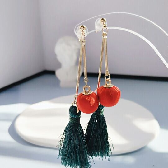 Terseピアス 1ペア レディース タッセル 赤 レッド ベイクドグリーン 緑 ゴールド 金 秋 オータム 冬 ウィンター お出かけ パーティー デート 普段使い プレゼント se0148ar