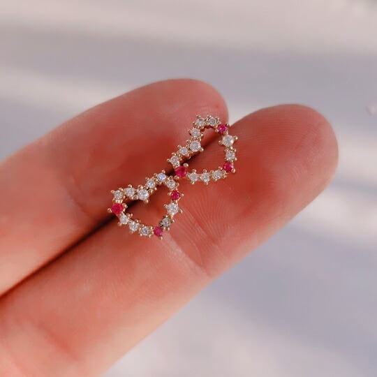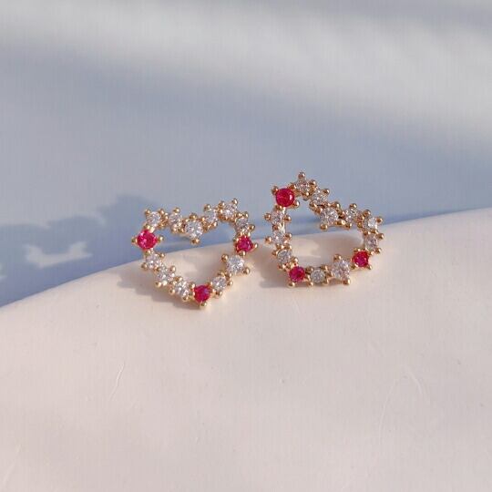 ■女性らしさを引き立てるハートのピアス!Leafyの「フェミニンなピンク&ゴールド☆ジルコニアのハートピアス」で、可愛らしい魅力をプラスしましょう!