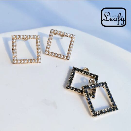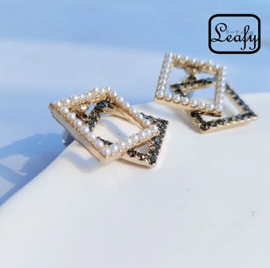 Leafy 使い方自在☆お洒落なダブルスクエアピアス 1ペア レディース 黒い方を取り外して白単独でもご使用可 大振 ジルコニア パール お出かけ イベント パーティー デート 普段使い プレゼント 入園式 入学式 卒業式 卒園式 x09162a
