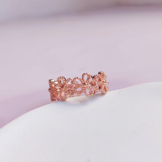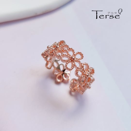 Terse 手編みのレースを指にまとったような繊細なデザイン 連なった透し彫りフラワーが女性らしいリング可愛らしく華やかに魅せてくれます サイズフリー ミル打ち 普段使い レディース 二次会 お呼ばれ お出かけ 一つで主役級の存在感 rs0195apg