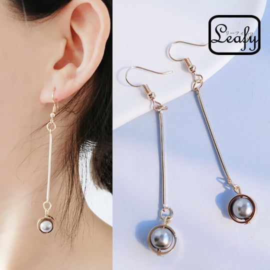Leafy ピアス 1ペア レディース フックピアス ロングピアス ロングバー パール グレー 灰色 ゴールド 金 かわいい 人気 お出かけ パーティー デート 普段使い プレゼント X09079