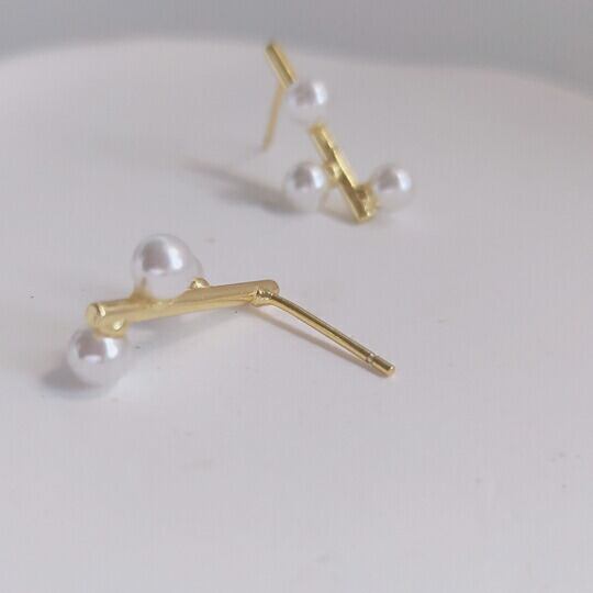 Leafyサイズ違いパールピアス3粒 バランスライン ピアス ゴールドスティックに本真珠のようなホワイトカラーのパールが輝いて、おしゃれに耳元を飾ってくれます シンプル カジュアルにもフォーマルにも使えます卒業式 卒園式 入学式 入園式 上品 冠婚葬祭 x09407a