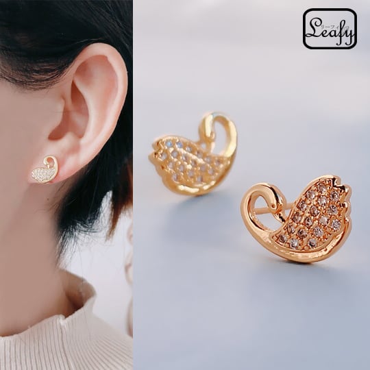 Leafyリーフィ 可愛い白鳥のピアス 1ペア エレガントな女性を演出してくれるデザイン レディースプレゼント ギフト 普段使い お出かけ お呼ばれ パーティー スワン 鳥 動物 アニマル ゴールド x09058a
