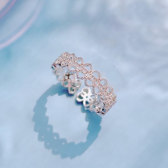 Terse レース模様の煌びやかなリング 透かし指輪 アーモンド形に連なったデザイン曲線は女性らしい柔らかさを表現してくれます☆可愛らしさとハンサムさを持ち合わせているので豊かな表情を楽しめます? フォークリング フリーサイズ rs0046a