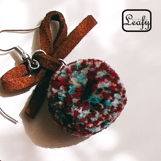 Leafy ピアス 1ペア フックピアス レディース ボンボン ふわふわ あったか 毛糸 リボン 茶色 ブラウン 赤 レッド ライトブルー 秋 冬 オータム ウィンター 暖かい お出かけ パーティー デート プレゼント ファー x09085abr 冬物