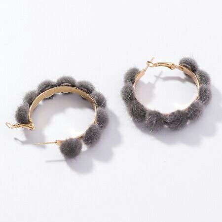 Leafy秋冬コーデにかかせないグレーカラー☆ふわふわが嬉しい!あったかぼんぼんピアス フレンチピアス パーティーにもぴったり レディース キュート かわいい 優しい エレガント プレゼント 普段使い イベント 二次会 食事会 女子会x09235agr ファー