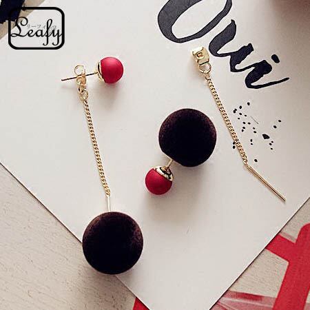 Leafyボンボンピアス 1ペア レディース ふわふわ ダークブラウン 茶色 コーヒー色 レッド 赤 秋 冬 極細チェーン オータム ウィンター 暖かい あったか バックキャッチ 使い方次第で2way パーティー デート 普段使い プレゼント X09081