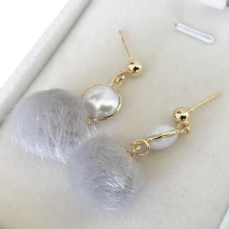 Leafy ボンボンピアス 1ペア レディース ファーピアス ふわふわ グレー 灰色 フェイクパール オーバル 秋 冬 オータム ウィンター 暖かい あったか お出かけ パーティー デート プレゼント x09086ag 冬物 冠婚葬祭 入園式 入学式 卒業式卒園式 ファー