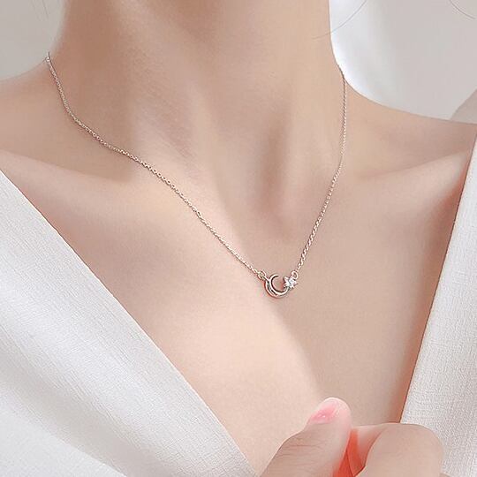 Terse ジルコニアがさりげなく胸元で輝くムーン&スターネックレス ペンダント レディース 三日月 星 デイリーでもフォーマルでも大活躍 上品 プレゼント ギフト お出かけ お呼ばれ パーティー 二次会 食事会 女子会 入学/入園/卒業/卒園式 宇宙 sn0162a