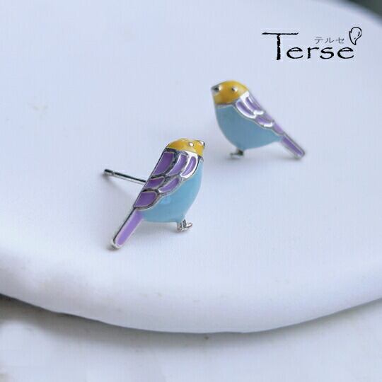 Terse 幸せのシンボル☆青い小鳥ピアス 1ペア レディース ブルーバード 幸福 ラッキーアイテム インコ アニマル 動物 お出かけ デート パーティー お呼ばれ 食事会 普段使い プレゼントエナメル ピアス うぐいす 鶯 春告鳥 sa0117a
