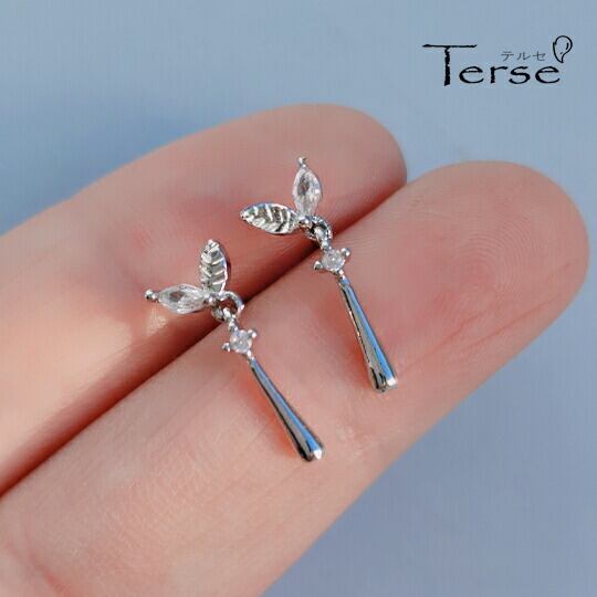 Terse 小さくてかわいいCZ双葉のピアス 1ペア ドロップ付きで大人の女性の魅力を引き出してくれるデザイン レディース ギフト プレゼント お出かけ パーティー お呼ばれ 二次会 葉っぱ リーフ 枝 シルバー 植物 ジルコニアピアス sp0037awh clear