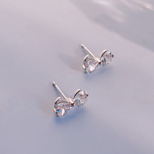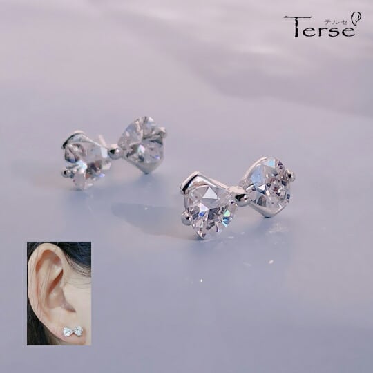Terse かわいい蝶々結びのシルバーピアス 1ペ.ア ジルコニアの輝きがお顔周りを華やかな印象に ワンポイント レディース おしゃれ お呼ばれ パーティー ギフト プレゼント S925ポスト リボン se0049a