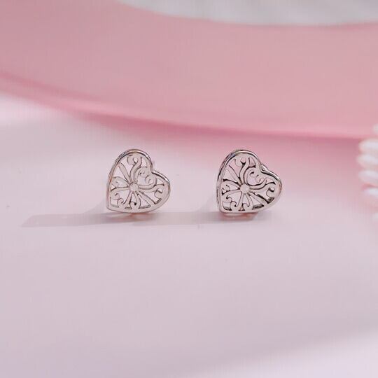 Terse ハートモチーフ 可愛い透かし彫りピアス☆耳元をキュートでPOPな印象に♪ 透かしデザインがワンランク上のおしゃれを演出してくれます。シルバー オールシーズン大活躍☆参観日・女子会・デートにも♪ SE0021A