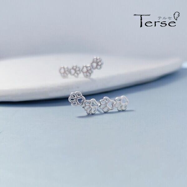 Terse 小さな仔猫足跡をデザインされたモチーフシルバー925スタットピアス 幅広い年代の方に身につけていただけるかわいい ねこ 犬 足跡 透かし 猫の足跡ピアス キャット 動物好きの方にオススメ とても癒されるカワイイピアス イヤリング 生き物 ペットsa0207a