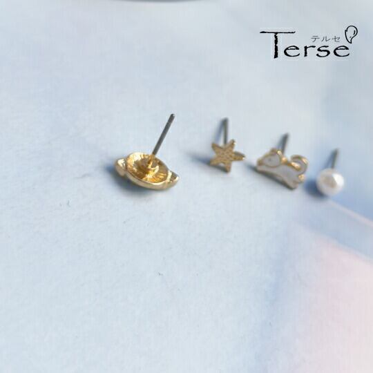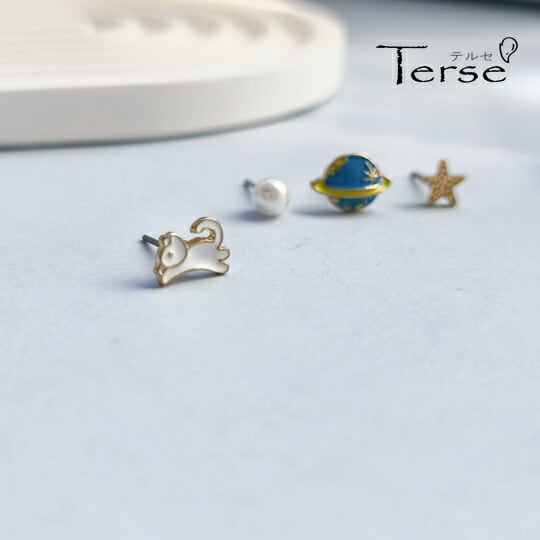 Terse 楽しい宇宙旅行ピアス☆日替わりで楽しめるお得なセット 1セット(4点入り) うさぎ コスモ 惑星 土星 星 スター 夜空 星空 パール 真珠 その日の気分で着せ替え ミニ 小さい 普段使い お出かけ パーティー プレゼントsa0163a 冠婚葬祭 入園式