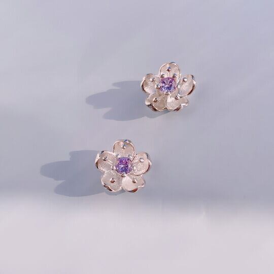 Terse シンプルかわいいお花モチーフのピアス さくら パープル ジルコニア 紫 桜 ピアス女性らしさを引き立ててくれるアイテム。耳たぶに丁度いい、可愛らしい感じになりますフラワー ピアス。一気に春気分を盛り上げる春色ピアス S925刻印 2月誕生石 sp0026apu