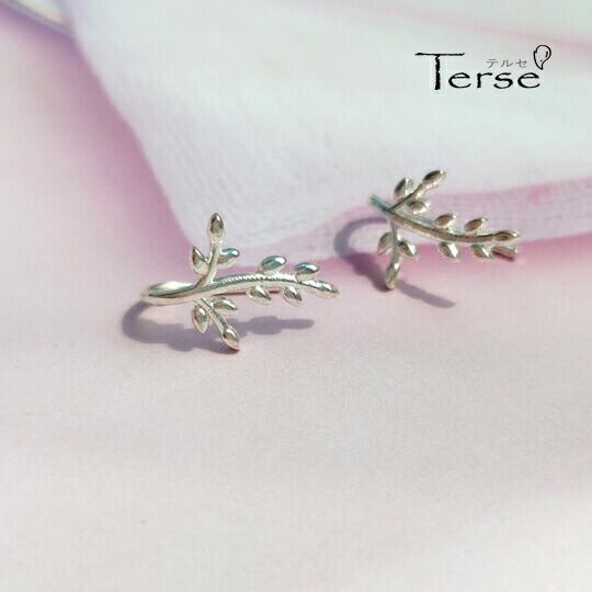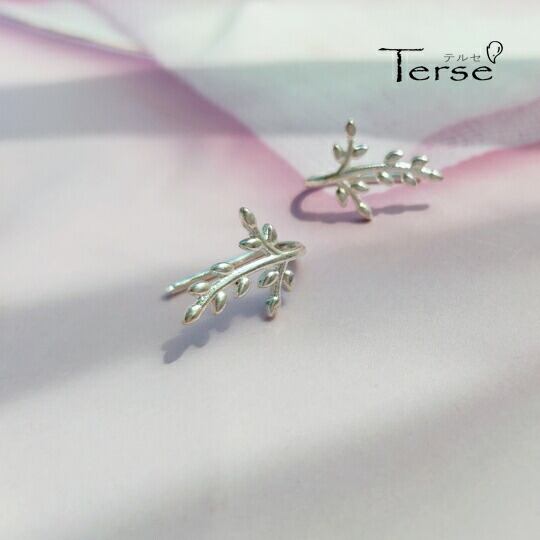 Terse テルセ オリーブ リーフ フープ ピアス美しく葉を彫り込んだピアス、平和と豊かさのシンボルであるオリーブの枝モチーフ 925シルバー ペア売り sp0034a