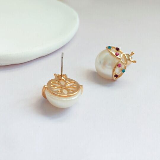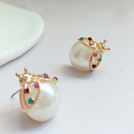 Leafy てんとうむしモチーフ カラフルピアス 幸せを運んでくれる♪ ファッションのアクセントにもなるのでガーリーにもカジュアルにもコーデを選ばずに思い切り楽しめます☆ pierce-x07186a-goldお肌に優しいピンクゴールド