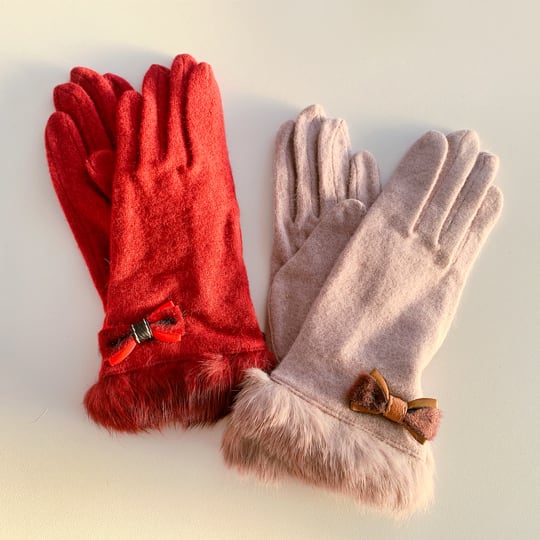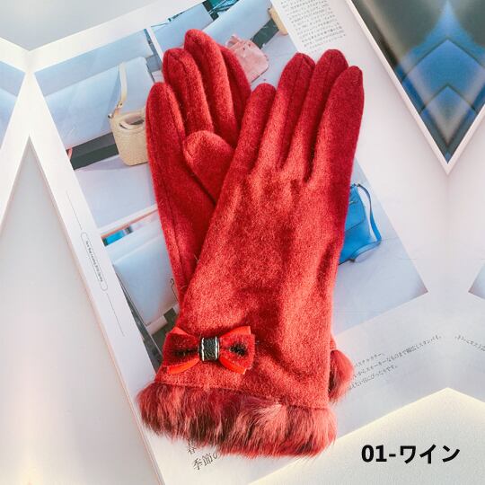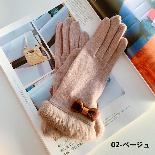 手首を彩るとしたファーとリボンちょこんと飾られたウール混レディースグローブ 手袋 手元まで女性らしさ溢れる雰囲気に裏起毛付きだから防寒しつつ寒い季節のお出かけをもっと楽しくしてくれる素敵アイテム 可愛くおしゃれに寒さ対策デキる女は手を冷やさない gl0019a