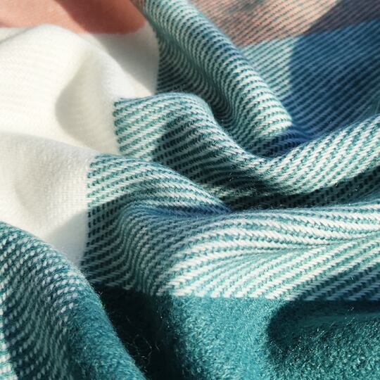 定番のチェックストール 印象的なカラーコンビネーション、ビビッドな発色の良さにこだわり カラーがポイントになるよう配色設計したチェック柄 ネックをふんわり包み込み優しい印象に 大判ストール 大きいサイズ ブランケット n-ma0047apk 秋冬マフラー