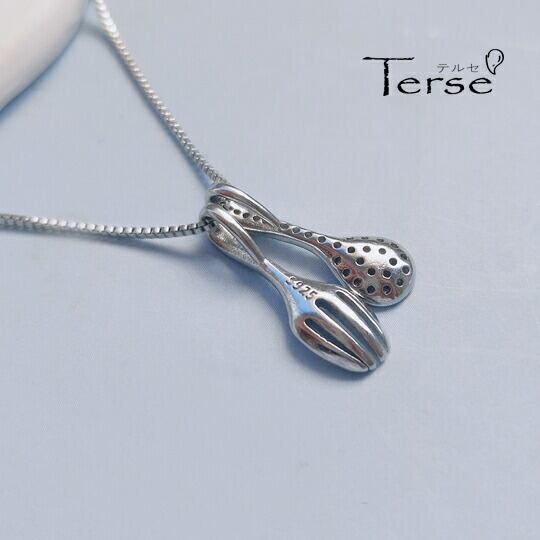 Terse大人の遊び心を落とし込んだスプーン&フォークモチーフのミニチュアネックレス 細部まで繊細に表現された本物そっくりのフォルムに鏡面仕上げを施し、上品な雰囲気 CZダイヤ ネックレス ジルコニア レディース お出かけ プレゼント 普段使い sn0280as
