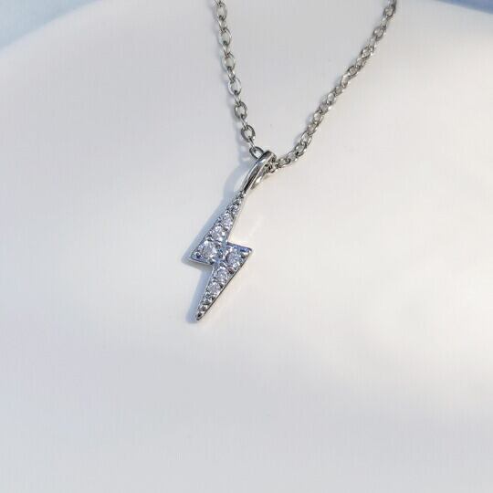 ■個性的な稲妻デザインで魅了!Terse S925 稲妻モチーフペンダント!「Terse S925 稲妻モチーフペンダント」は、シンプルでありながら目を引く稲妻のデザインが特徴です。キュービックジルコニアが胸元で輝き、あなたのスタイルに活力と個性を添えます☆夏のコーディネートにもぴったりで、雷のエネルギーを感じさせる存在感があります。