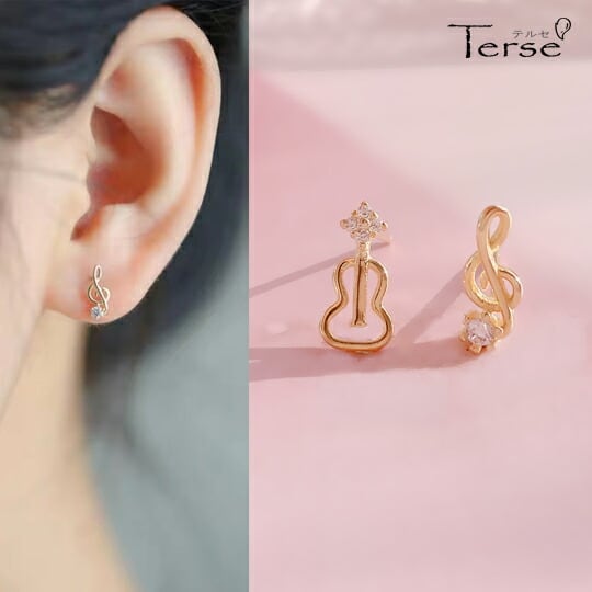 ■音楽の楽しさが耳元に広がる!Terse 耳元奏でられるミュージック♪ジルコニアが輝くギターピアス 1ペア