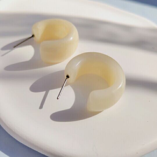 Terse ふんわり可愛いミルクカラーのお洒落なラウンドフープピアス 1ペア レディース ホワイト 太め 厚み 幅広 トレンド感 アクリル お出かけ イベント デート お呼ばれ パーティー 食事会 女子会 普段使い プレゼント se0221awh