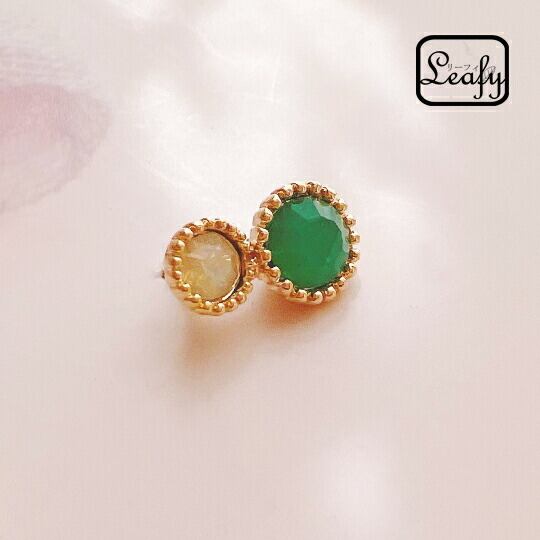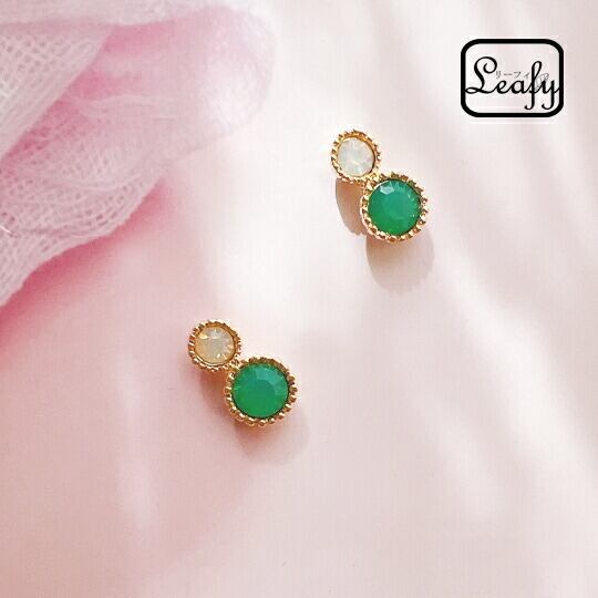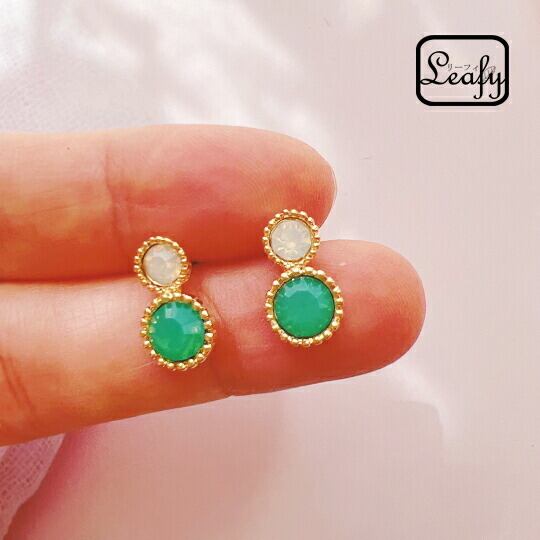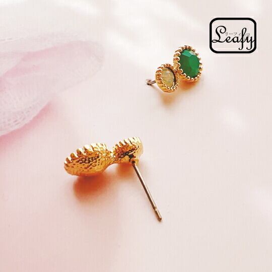 ■神秘的な輝きを耳元で感じる!Leafy エメラルド風ビジューピアス☆ 1ペア
