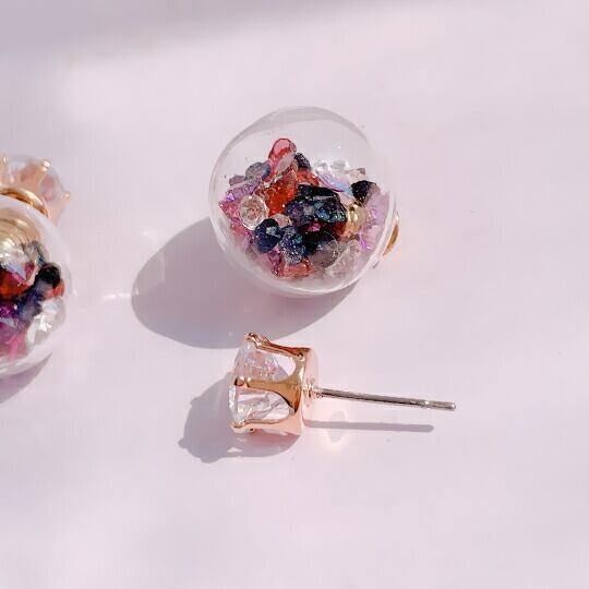 Leafy ガラスドーム ピアス グラスボール バックキャッチ ピアス♪ゼリーみたいにキュート!カラフルなジルコニア&一粒ストーンピアス♪2way 一粒ストーン(ジルコニア)のピアスとしても使えます x08141ag 花火大会 4月誕生石