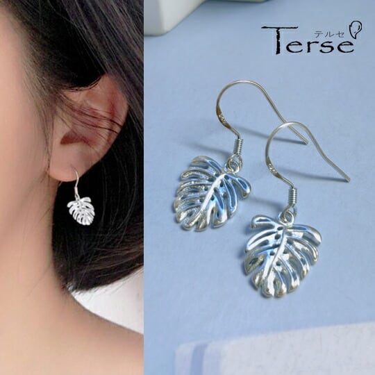 Terse S925 エキゾチックで個性的な葉を持つモンステラモチーフピアス 1ペア ハワイ語で「湧き出る水」という意味があり、金運のお守り代わりにも◎ レディース プレゼント 普段使い お出かけ パーティー 二次会 植物 葉っぱ リーフ 南国 夏 サマー sp0079a 9月誕生花