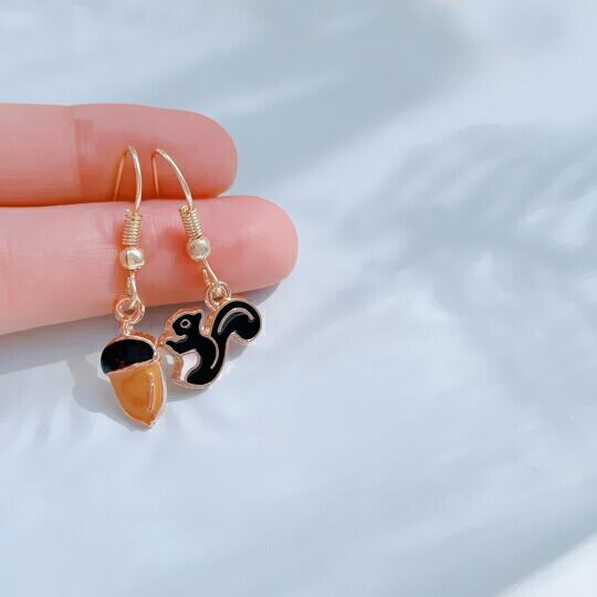 ■秋のお出かけに欠かせない!Terse どんぐりとリスのかわいいアシメントリーピアス♪
