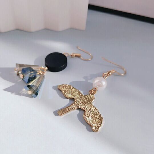 Terse 幸運を呼ぶブルーバードピアス 1ペア フックピアス レディース プレゼント ギフト お出かけ おしゃれ お呼ばれ アシンメトリー アニマル 鳥 SE0110A
