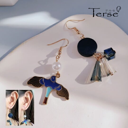 「Terse 幸運を呼ぶブルーバードピアス」は、アシンメトリーなデザインが特別感を演出し、耳元で揺れ動く姿が一層の可愛さを際立たせます。軽やかなつけ心地はデイリーユースにも最適で、特別な日の装いにも華を添えること間違いありません。自分へのご褒美や、大切な方への心のこもったギフトとしてもおすすめです!