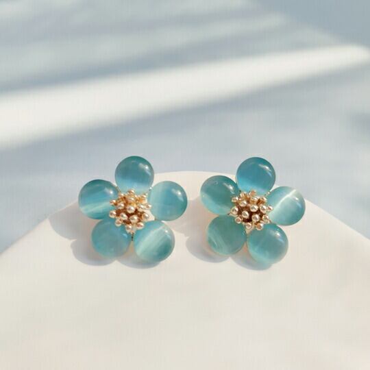 Leafy 爽やかで清楚なフラワーピアス 涼しげで可愛いアクリルフラワー どんなスタイルにも合わせやすいので大活躍 ブルー 大人可愛い クール お上品 x04861abl