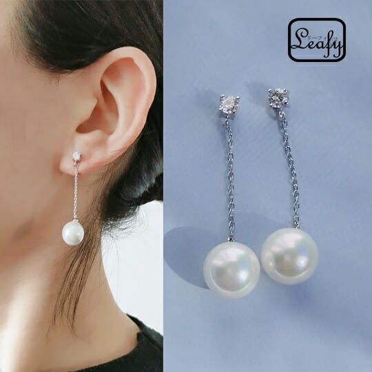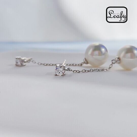 「Leafy リーフィ 大粒のパール チェーンピアス」は、存在感を放つ大粒のパールが特徴的な特別なアクセサリーです☆ パールの美しさを讃えるように、ジルコニアの波動が華やかに輝き、耳元を魅了します。