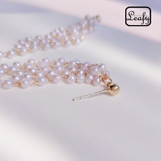■大人の魅力を引き立てる洗練されたデザイン!Leafy きらめきゴールド☆ネックレスのようなチェーンパールピアス 1ペア