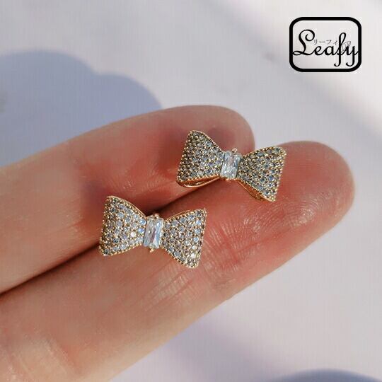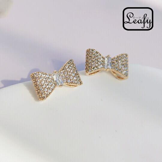 ■春の訪れを感じる可愛らしいデザイン!Leafy リボンモチーフキラキラピアス 1ペア