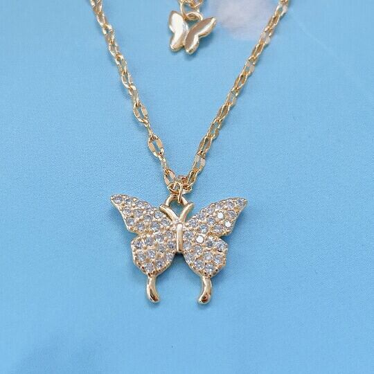 Terse 可愛らしいバタフライが首元を飛んでいる様子をデザインした2連CZダイヤペンダント 蝶はさなぎから蝶へ、美しく生まれ変わる姿から「美」や「成長」のシンボルとされています 美しさを保つお守りとして女性にぴったりのラッキーモチーフ ネックレスsn0306ag