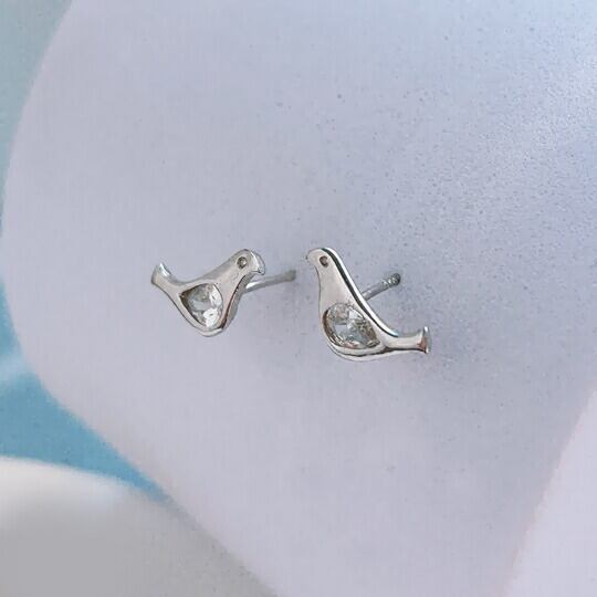 ■耳元でふんわりと愛らしく輝く小鳥デザインのピアス!Terse シンプルでかわいいジルコニアCZ付き小鳥のピアス
