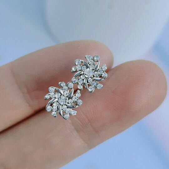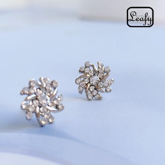 ■耳元で輝きを放つ叶うような巻き風デザインのピアス!Leafy 巻き風ピアス キラキラストーン シルバー