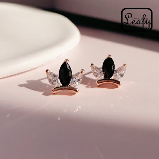 「Leafy カラージルコニアの王冠/クラウンモチーフピアス」は、鮮やかなカラージルコニアを贅沢に使用した魅力的なアクセサリーです☆ ピンクゴールドの柔らかな輝きと黒とクリアストーンのコンビネーションが耳元を華やかに演出し、カジュアルからフォーマルなシーンまで幅広く対応します!特別な日のおしゃれや、デイリーユースにもぴったりなアイテムです!