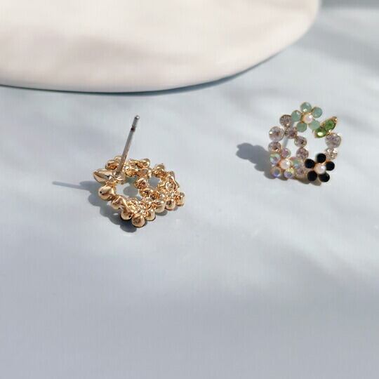 Leafy 涼しげなラインストーンが美しく調和して魅力的♪耳元を華やかに演出するエレガントなピアス♪ゴールド/マルチ石x07306agm 誕生日プレゼント ホワイトデー お返し 母の日 結婚祝い 記念日