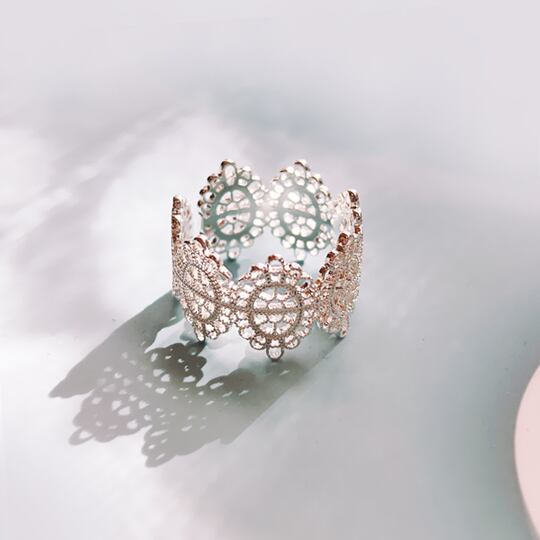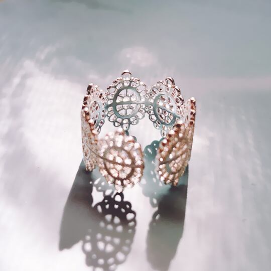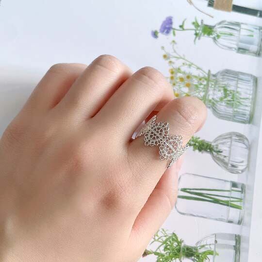 「Terse☆繊細なレース模様のリング」は、優雅な透かしデザインが特徴のリングです☆ ホワイトカラーが肌に映えるこの指輪は、華やかさとかわいらしさを兼ね備えており、日常使いからデート、お出かけやパーティーまで幅広いシーンで活躍します。また、特別な人へのプレゼントとしても喜ばれること間違いなしのアイテムです♪