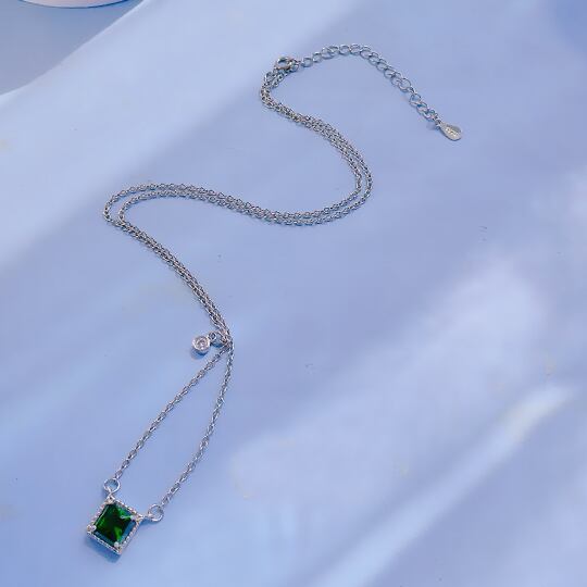 Terse S925 胸元でエメラルドグリーンのジルコニアが輝くペンダント ネックレス シンプルで強調しすぎないデザインなので、大人のお洒落が楽しめます♪レディース プレゼント 普段使い お出かけ パーティー 二次会 sn0092a 5月誕生石