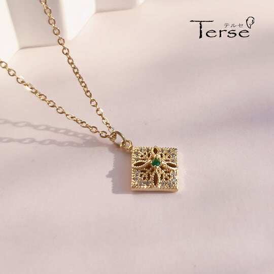 Leafy 中央のグリーンジルコニアとアラベスク模様の透かし彫りが美しいペンダント ネックレス レディース 上品 エレガント 女性らしさ アクセント 幾何学模様 普段使い お出かけ パーティー イベント 食事会 女子会 プレゼント ギフト sn0257a