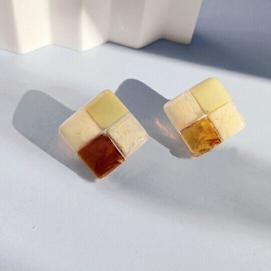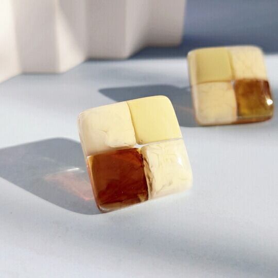 陽気なオレンジ&クリームイエローで華やかさをプラス!Terseのブロックチェックピアスでおしゃれを楽しんでください♪