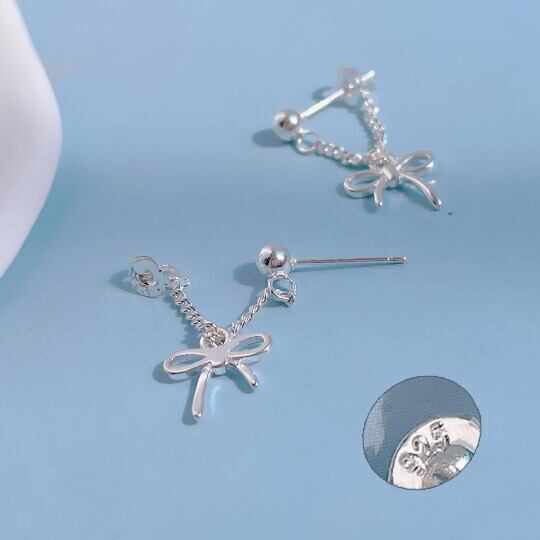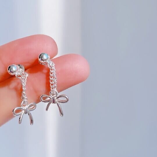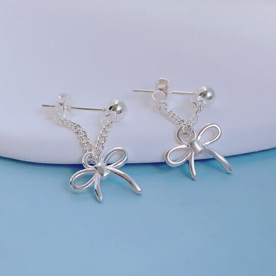 Terse S925 可愛い蝶々結びがついたチェーンピアス 1ペア シンプルだけどキュートなリボンが耳元で揺れます 普段使い お出かけ パーティー ギフト プレゼント SE0065A